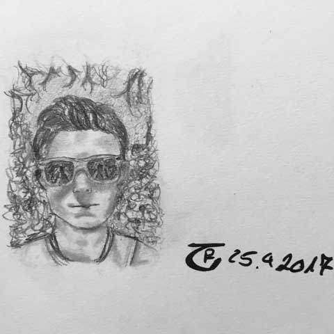 I drew and painted him very often in different postures and styles. I started with practicing in pencil drawing and made some colored oil paintings later. (2017)