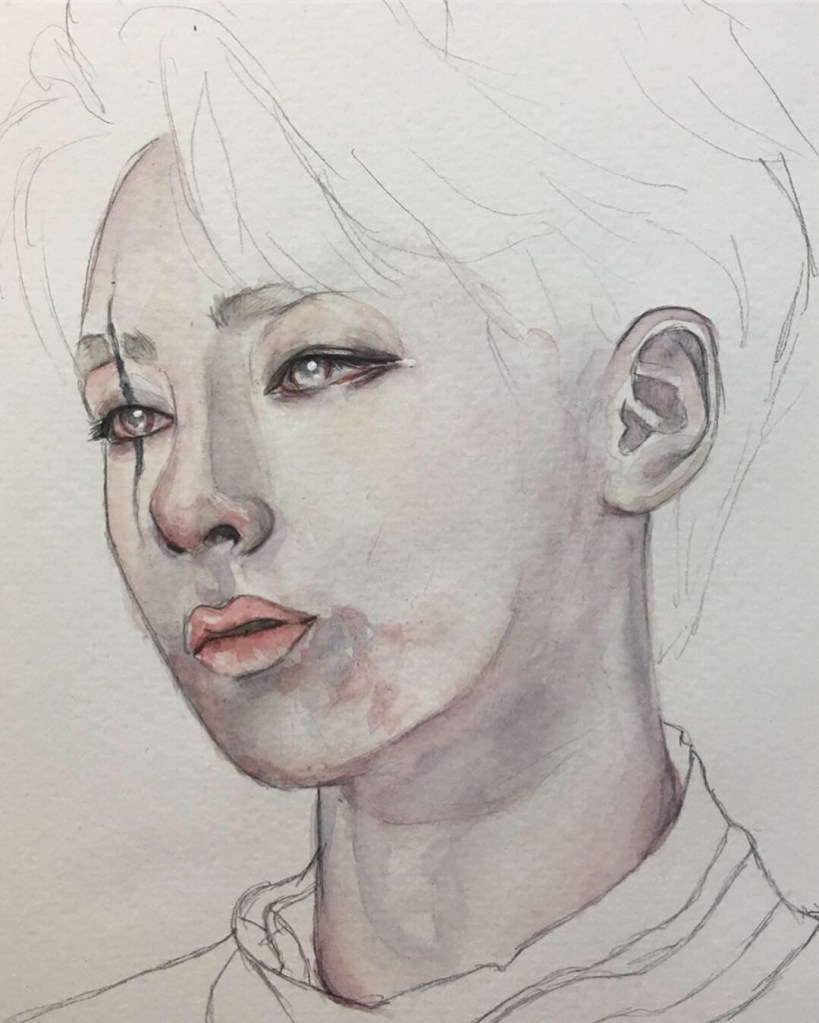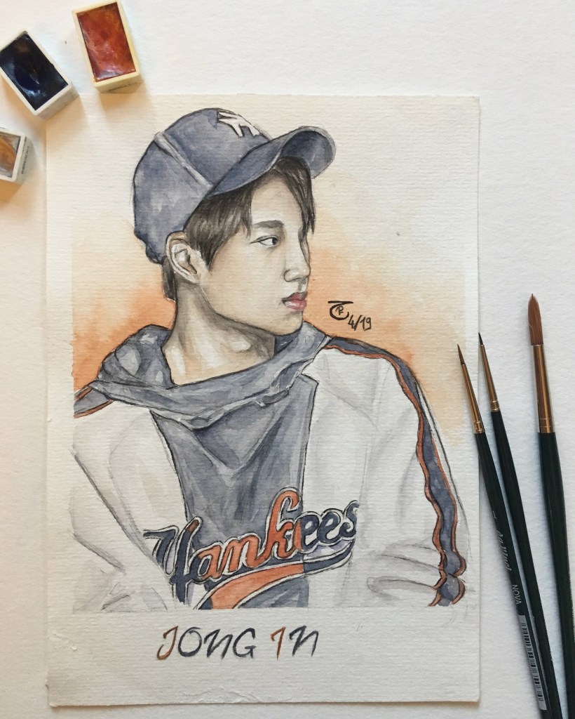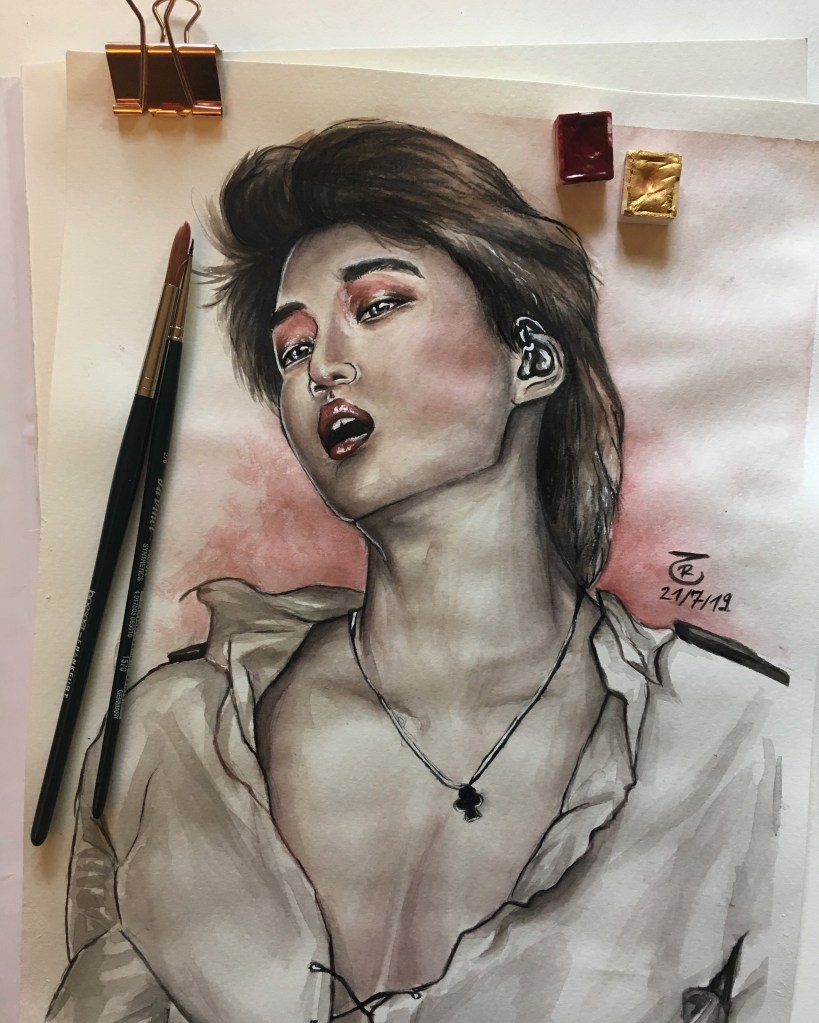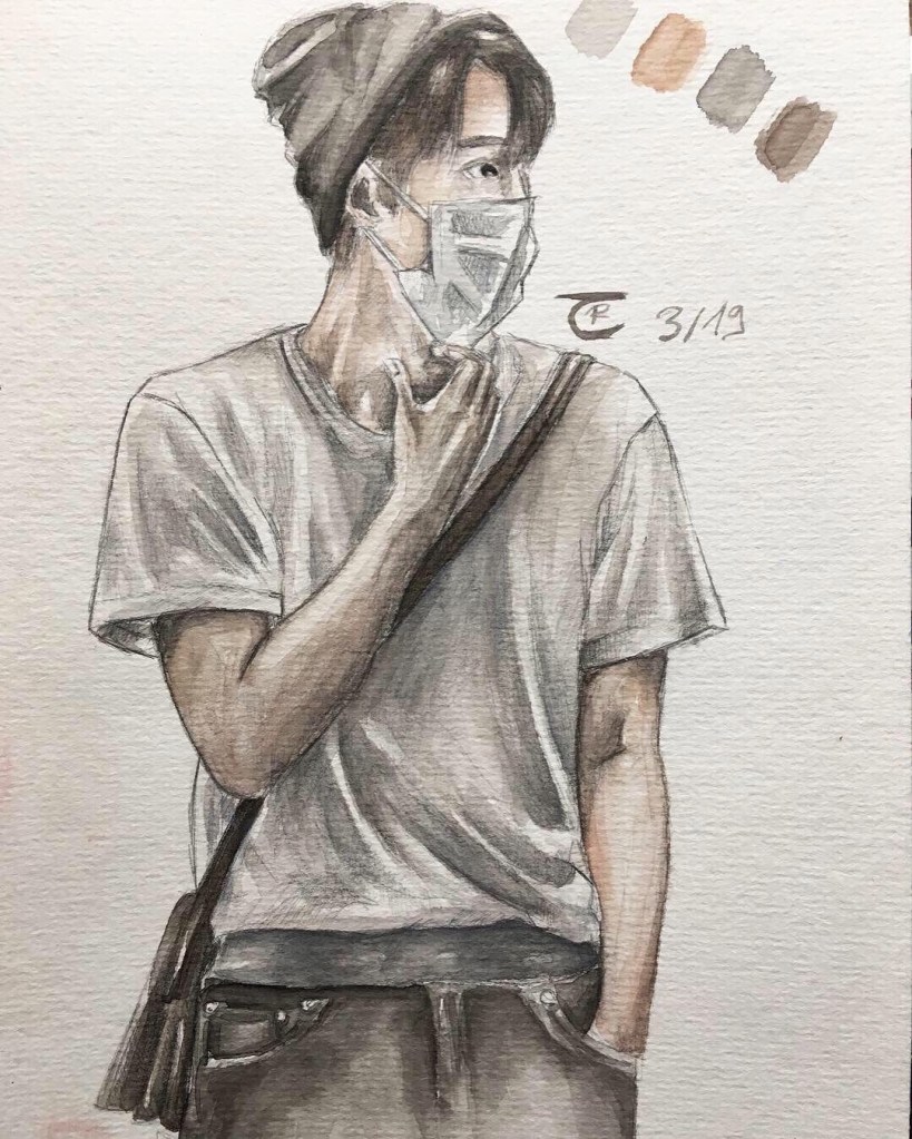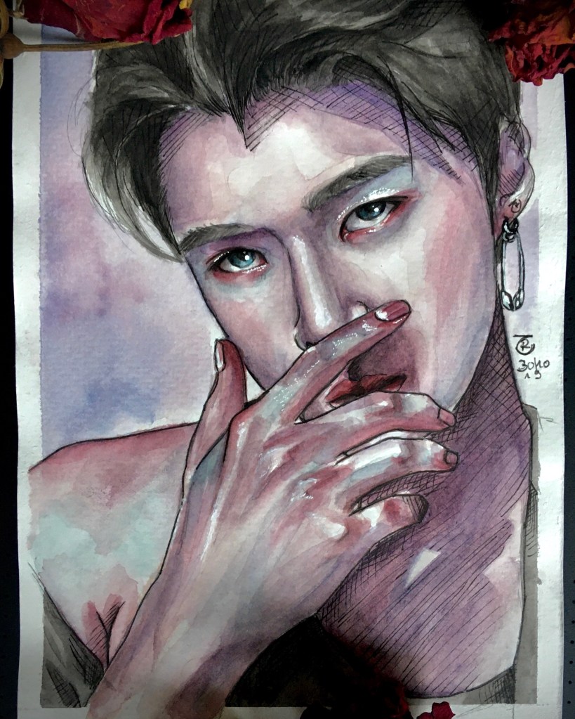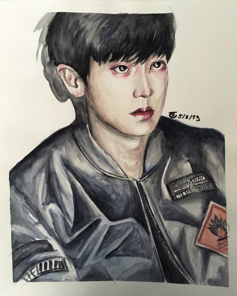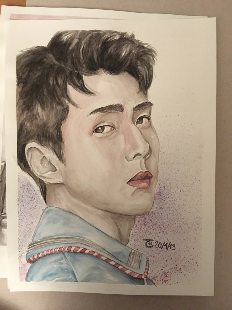 Here, you’ll see the most striking progression in my work—from my very first watercolor painting to my very last K-Pop-inspired artwork. They are sadly not in the right order towards the end