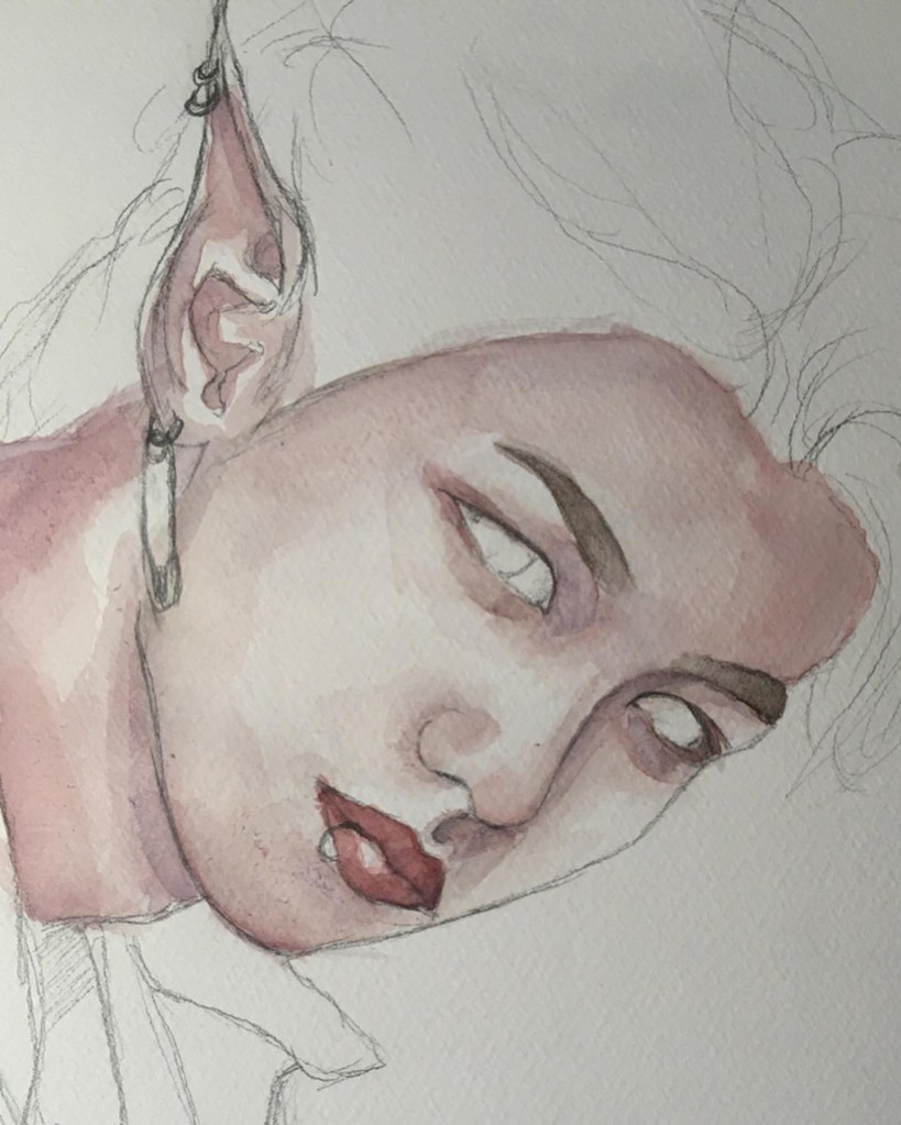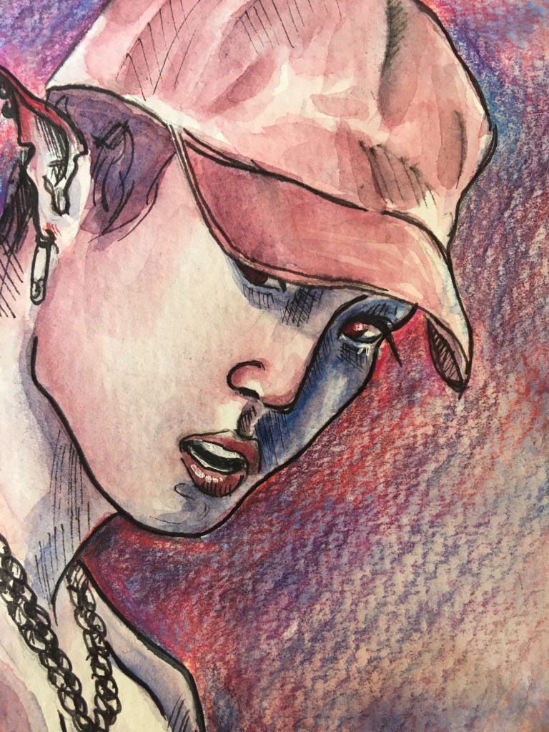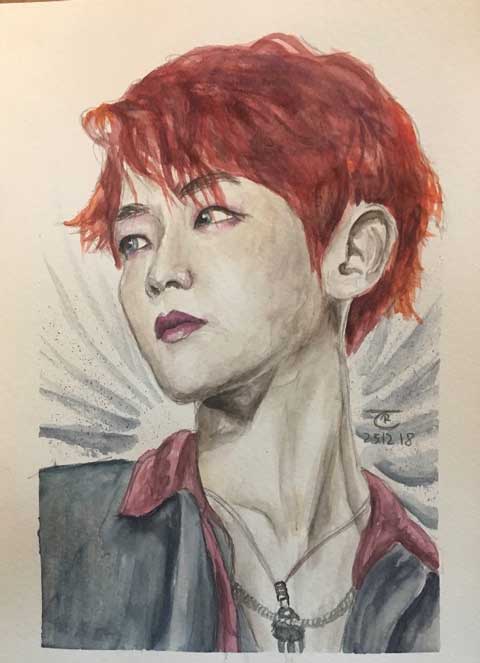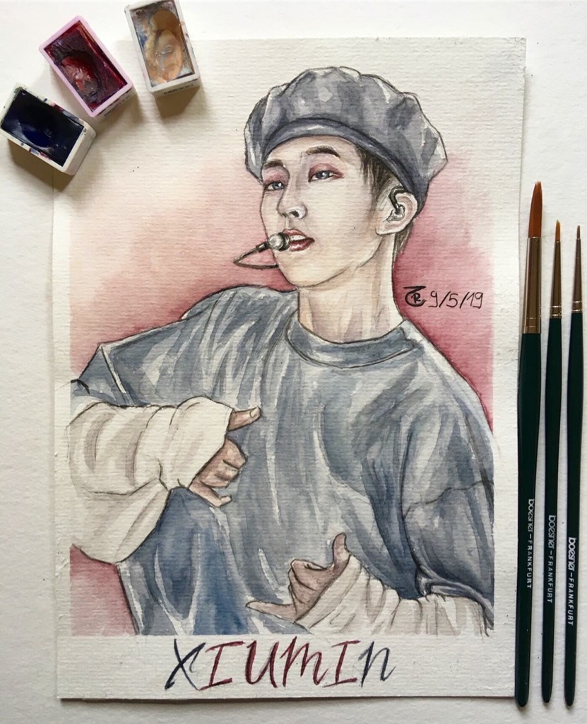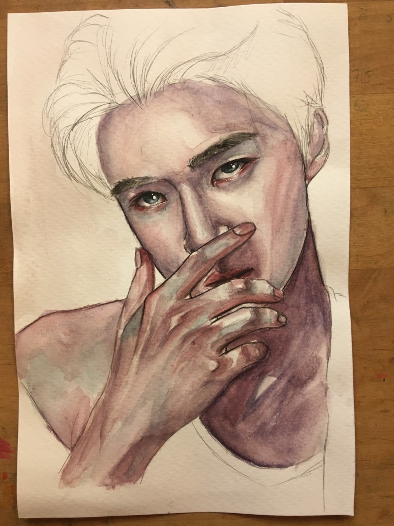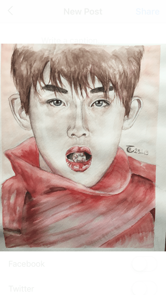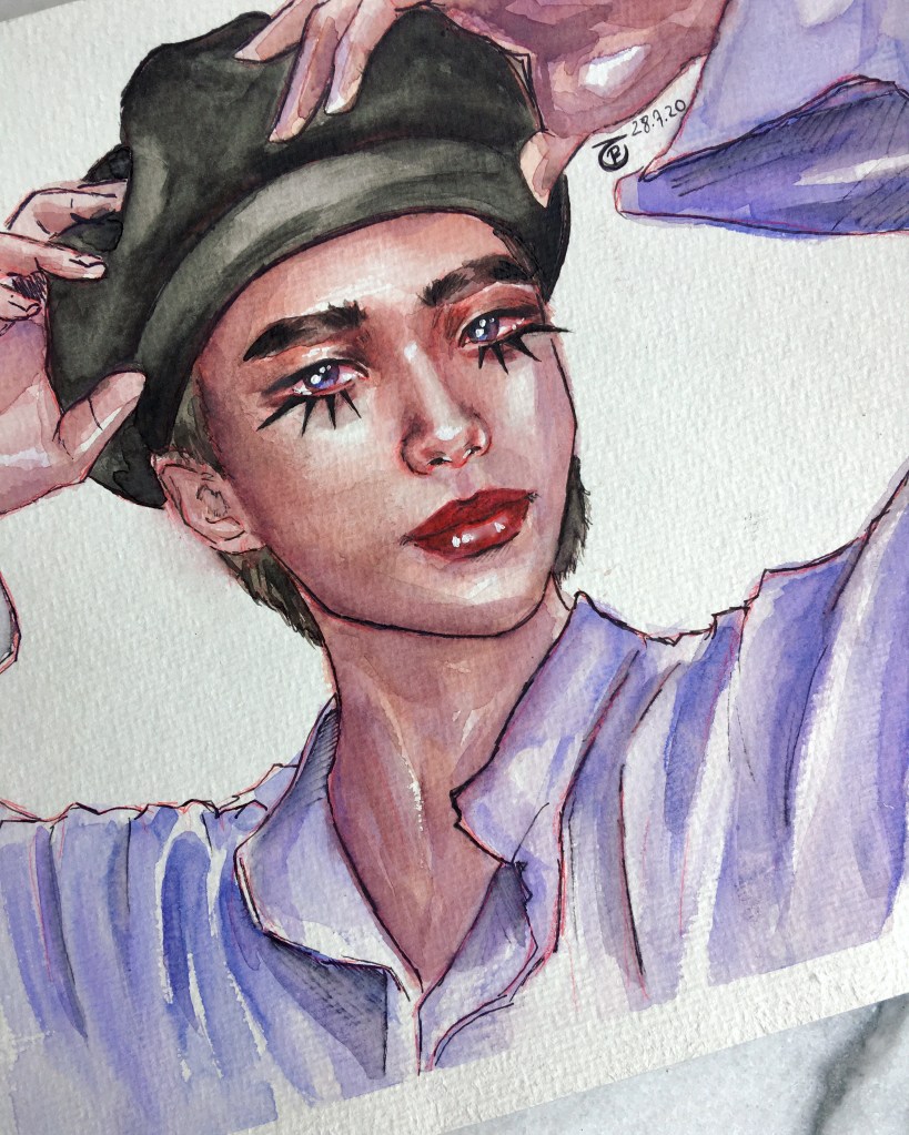 Here, you’ll see the most striking progression in my work—from my very first watercolor painting to my very last K-Pop-inspired artwork. They are sadly not in the right order towards the end