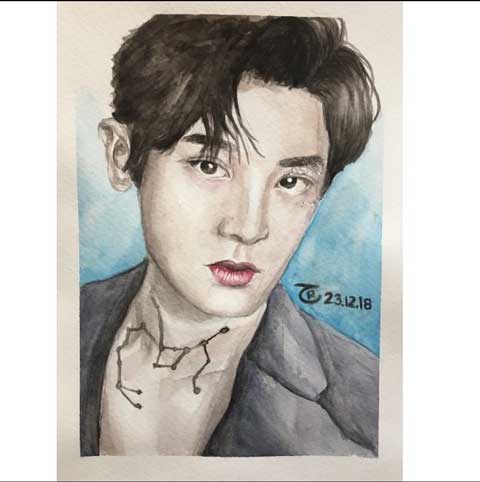 Of course, I didn’t only work in watercolor. Pencil drawing has always been a comfort zone for me—it’s soothing, familiar, and lets me create without needing to revisit the basics. Because of that, I have quite a few K-Pop-related pencil drawings as well. Most of these feature members of EXO, so I’ve included them in this section, but you’ll also find portraits of members from other groups like BLACKPINK, MONSTA X, and NCT.