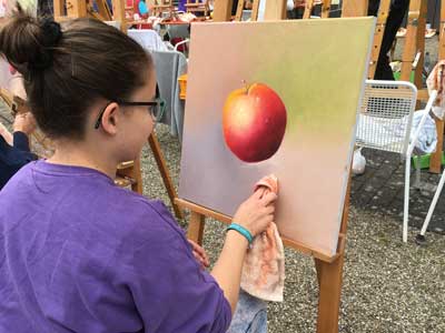 In May 2017, I was a participant in the Apfelmalertreffen by Herdin Radtke. A group of mostly adults painted according to the artist’s instructions together an apple with oil color. The event took place in the spa park of Bad Salzschlirf. It was an exciting experience and later I painted some more apples and other figures in oil by myself.