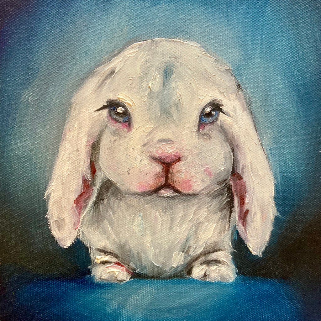 As a birthday present I painted Lilly ( I can’t quite remember, whom it was a present for) but my mom thought the painting looked like belongs in an Ancestral Gallery. I loved the idea and over time I painted the other two rabbits. Now we have this Ancestral Gallery in my parents corridor and the only one still missing is Maja, the Labrador I grew up with.