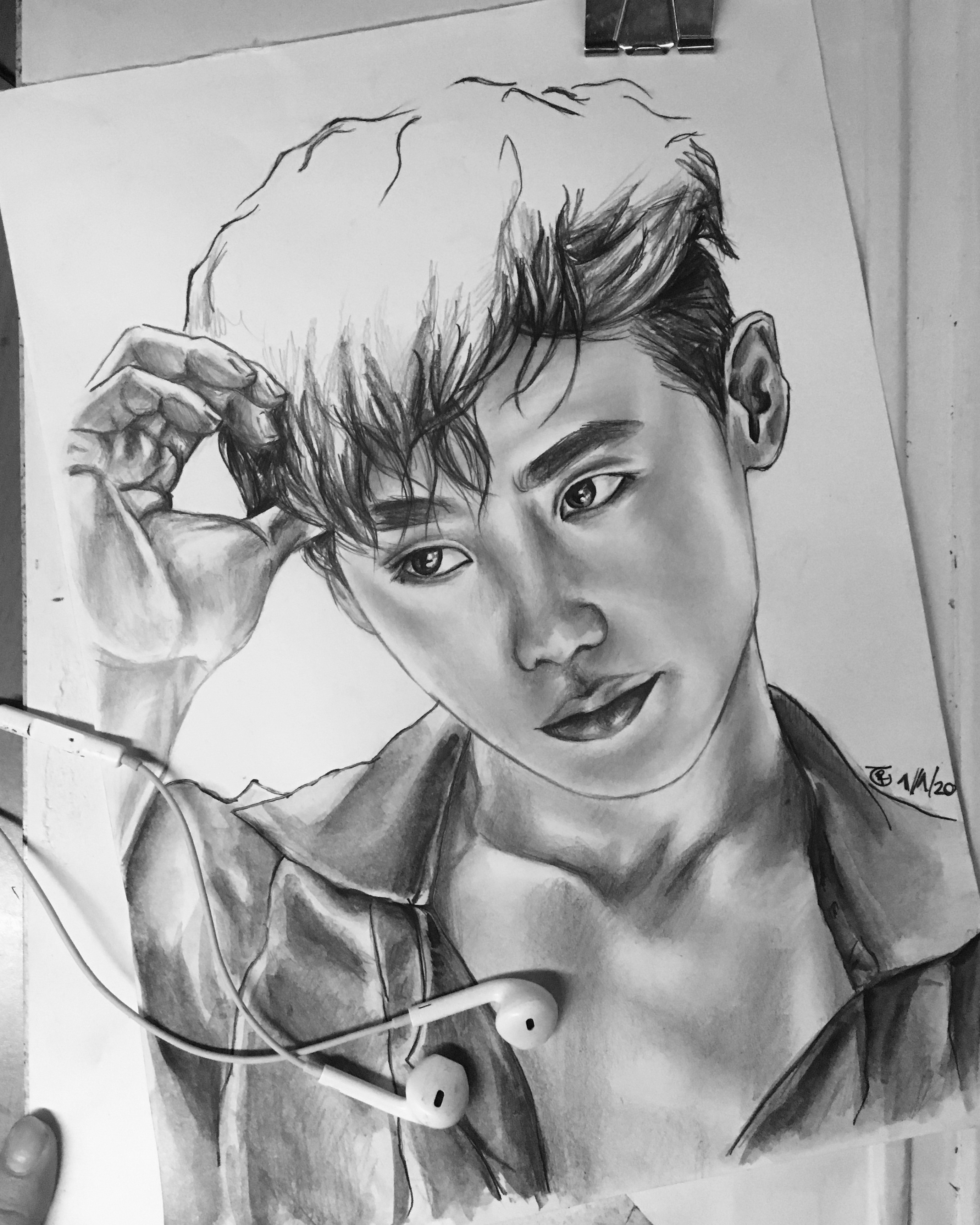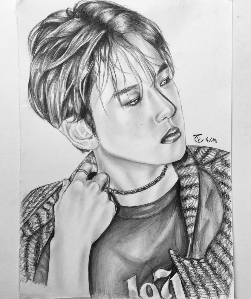 Of course, I didn’t only work in watercolor. Pencil drawing has always been a comfort zone for me—it’s soothing, familiar, and lets me create without needing to revisit the basics. Because of that, I have quite a few K-Pop-related pencil drawings as well. Most of these feature members of EXO, so I’ve included them in this section, but you’ll also find portraits of members from other groups like BLACKPINK, MONSTA X, and NCT.