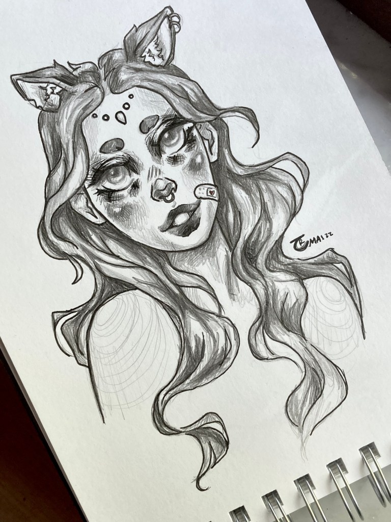 Since drawing with a pencil is the first skill I ever learned, it brings me a sense of calm that remains to this day. It’s a medium I always return to, even as I develop a distinct style with acrylics and watercolors. When using a pencil, I find myself leaning towards a more realistic approach, though my unique style still shines through in these pieces.